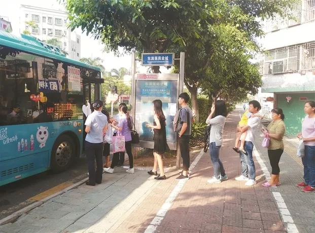 317高峰专线、M290线、M444线、357线……各路公交一进站,司机打开了后车门,一排排有序的乘客按次序上车。