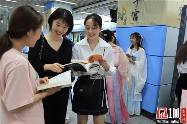 2019年11月17日下午,深圳地铁2号线和3号线上,百余名热爱读书的市民朋友手捧书籍在列车行进过程中安静阅读,不少乘客自发加入。据悉,活动由深圳地铁集团发起,联合民间公益社团“汉服深圳”,通过地铁阅读“快闪”这样别出心裁的行为艺术,旨在唤醒城市人群的阅读意识,利用搭乘地铁的碎片化时间学习,或是在嘈杂与匆忙的情景下找到内心平和,共同营造“书香地铁”的阅读氛围。