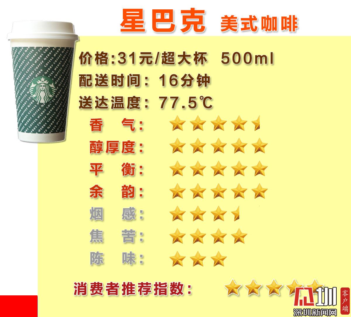 经过20位消费者的主观体验,四款咖啡品牌“美式(热)”口味的主观测评如下。