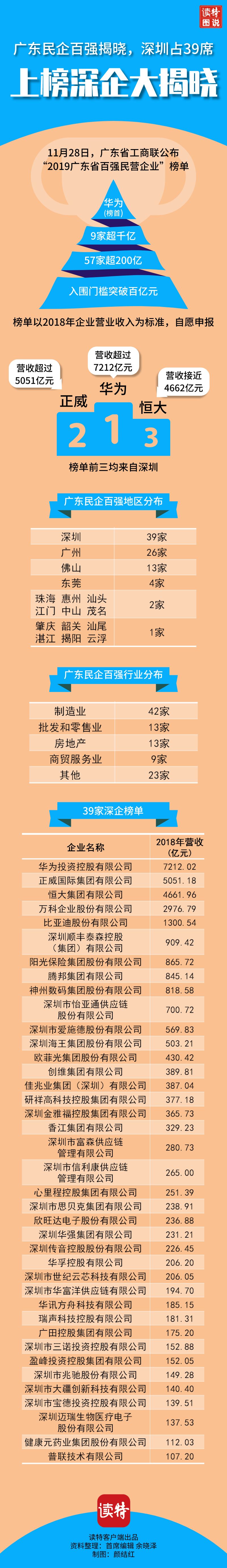 原标题 一图读懂|广东民企百强揭晓,深圳占39席!