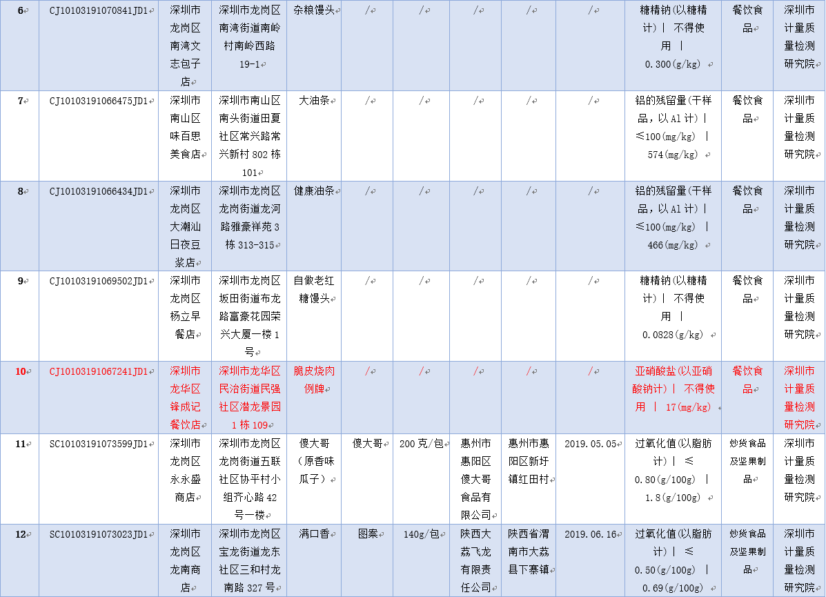 见圳客户端·深圳新闻网2019年12月2日讯 为保障深圳食品消费安全,深圳市市场监督管理局于2019年8-9月组织对生产、流通、餐饮环节的食品开展了专项抽样检验工作。