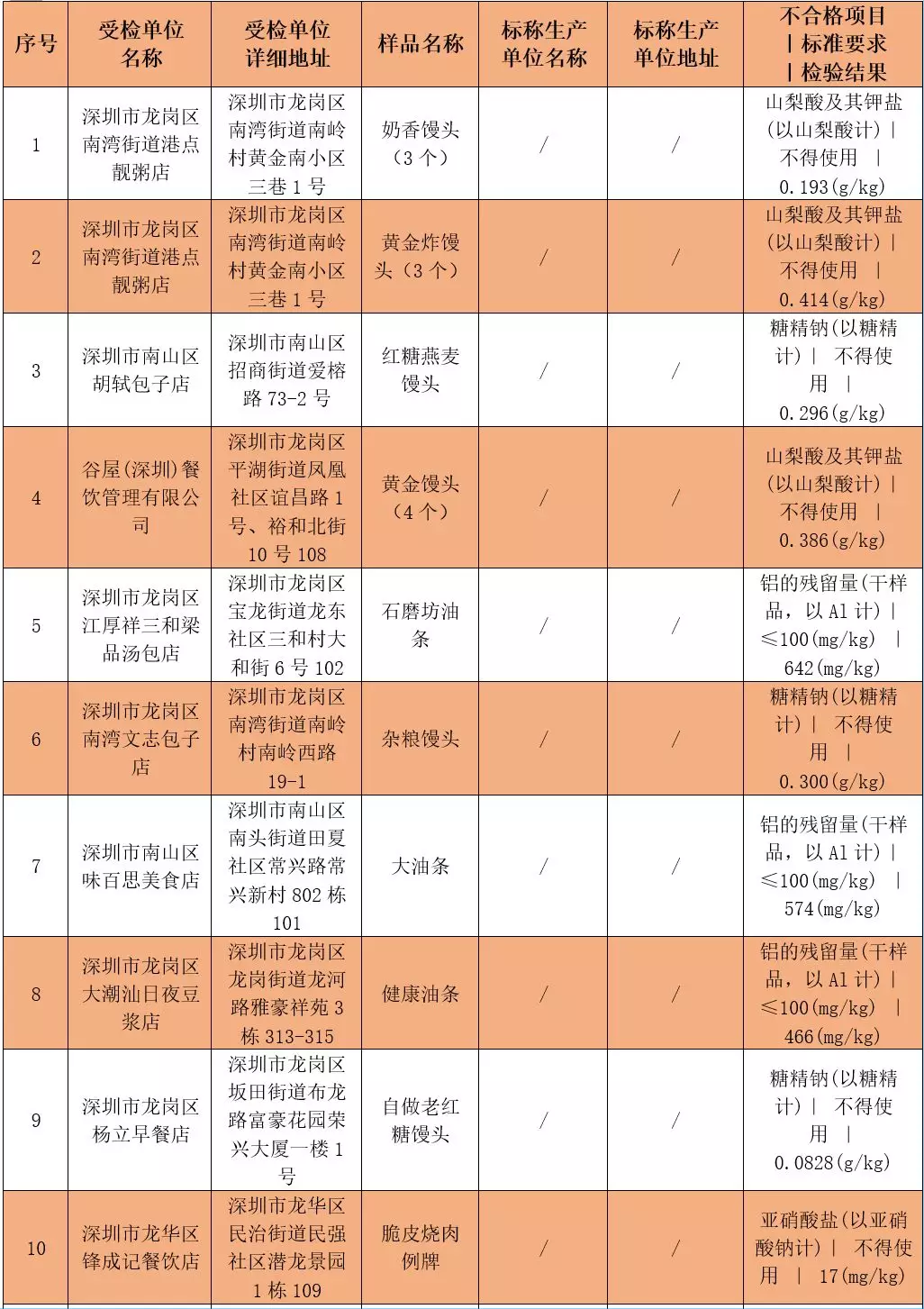 在本次抽检中,有6批次馒头不合格,不合格项目涉及山梨酸及其钾盐、糖精钠。