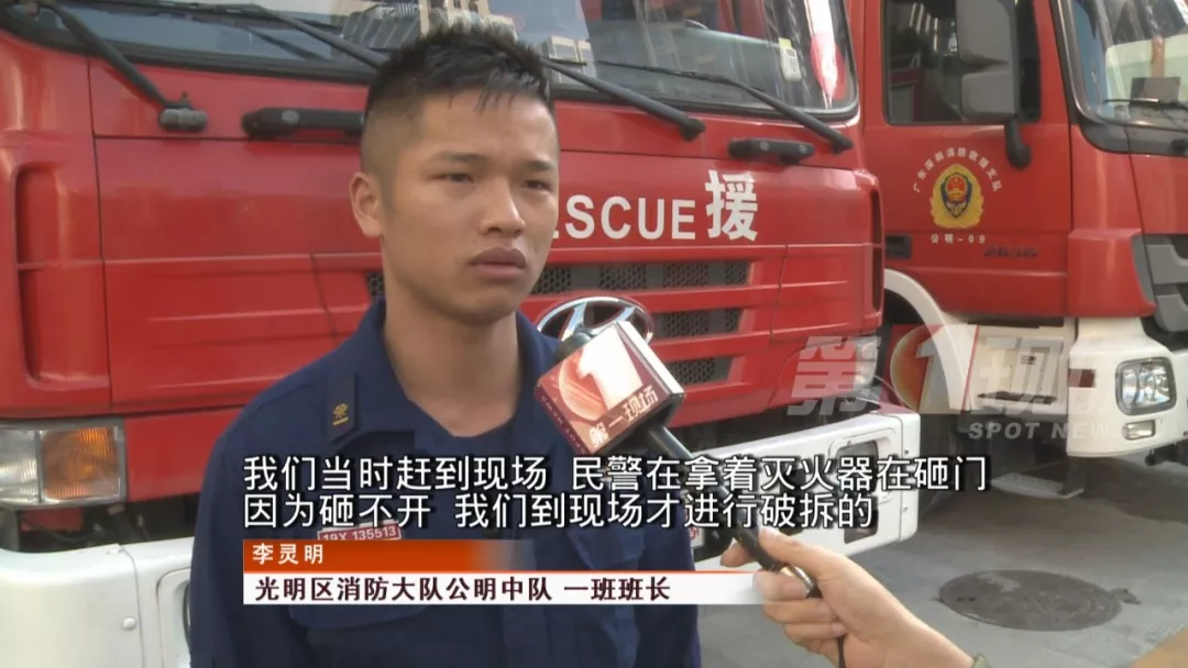 该户人家用的是密码锁,可能是因为事发紧急,再加上屋内浓烟呛鼻,女主人竟然一直说不准房间大门的开锁密码,危急时刻,消防队员及时赶到了现场。