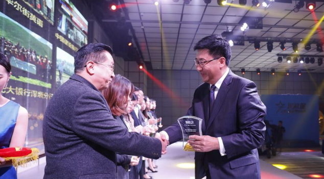 水贝珠宝集团副总裁卢森荣为“房地产行业最受网民欢迎品牌”颁奖。