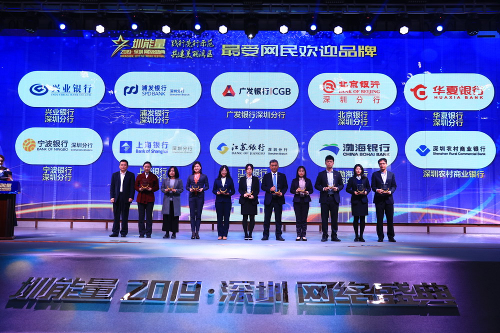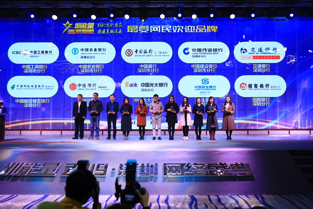 深圳市银行业协会秘书长周汉为“银行行业最受网民欢迎品牌”颁奖。
