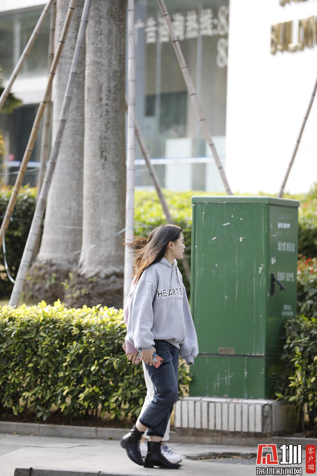 见圳客户端、深圳新闻网2019年12月6日讯(见圳客户端、深圳新闻网记者 杨浩翰)最近的大风,都在提醒深圳人冬天已经来临。冬天穿衣除了保暖,好看也很重要。在这个冬天,在深圳生活的市民们是穿什么样的衣服出门呢?这十四张照片也许可以给你答案。