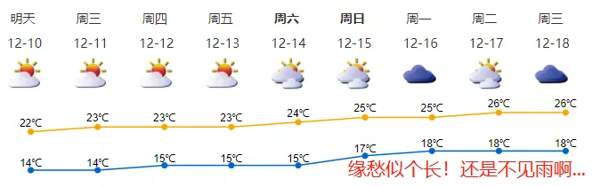 【深圳天气趋势】气温逐日回升,森林火险红色预警继续生效:9日起我市气温逐日回升,9-11日大致晴朗干燥,9日气温13-21℃;12-14日云量逐渐增多、湿度逐日增大,干燥程度逐渐缓解;15日多云间阴天,偶有零星小雨。森林火险红色预警正在生效,请加强森林防火安全巡查,注意用火安全。早晚体感较凉,注意添衣保暖。