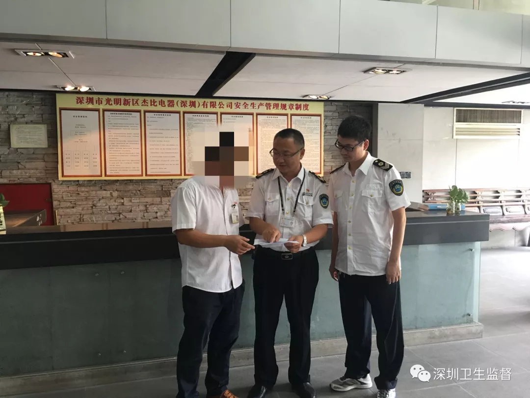 今年6月,光明区卫生监督所卫生监督员对位于辖区内的杰比电器(深圳)有限公司进行日常监督检查。