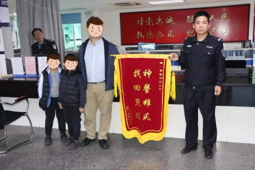 近日,深圳市公安局福田分局香蜜湖派出所接到群众报警称,自己的双胞胎儿子在同一个小学上学,放学后接到一个孩子,另外一个孩子却走丢了,希望派出所民警帮忙寻找。了解情况后,香蜜湖派出所警力迅速展开视频研判,发现事主走失儿子的活动轨迹。原来,事主的儿子与同学结伴乘坐地铁到同学家里,有惊无险!为了对民警及视频队员的高效专业表达感谢,事主专程来到香蜜湖派出所送上锦旗。