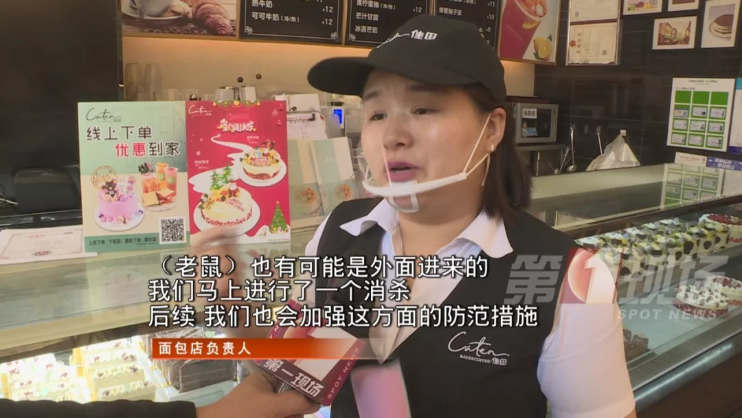 12日上午,记者来到涉事面包店,负责人承认烘焙室进了老鼠,他表示,事发时烘焙作业已经结束,没有面包糕点被污染,他第二天打电话向李先生道歉并承诺整改。