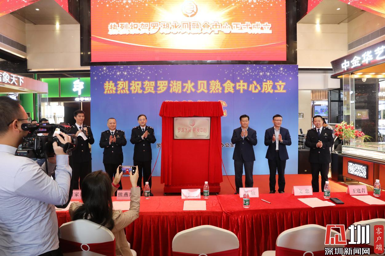 黄敏副市长、市市场监管局局长邝兵、罗湖区副区长文忠及深圳市市场监管局、罗湖区政府有关负责同志为罗湖水贝熟食中心揭牌