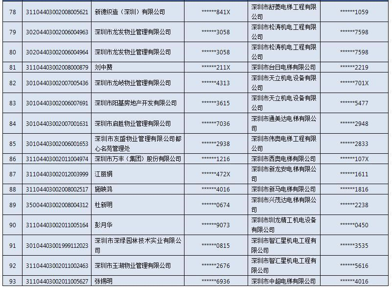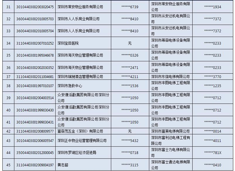 以下是电梯扶梯抽检不合格“黑名单”