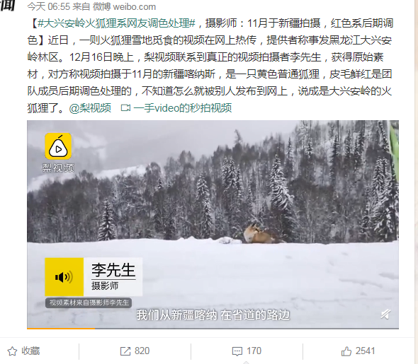17日就被辟谣了,说是在新疆拍的一只普通黄狐狸
