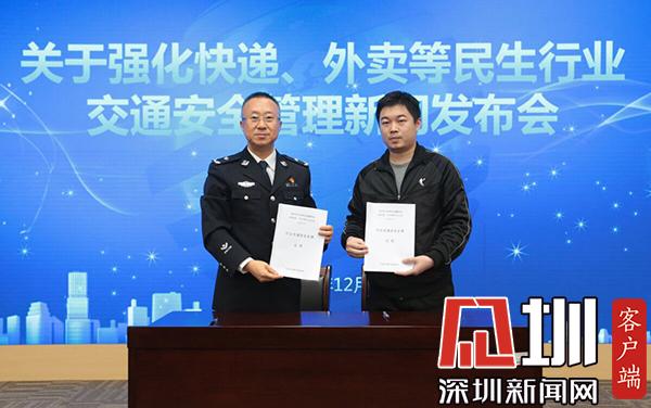 12月23日下午,深圳市交警局召开关于强化快递、外卖等民生行业交通安全管理新闻发布会。