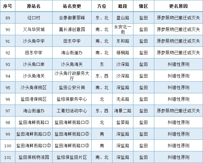 比如大浪商业中心改为大浪商业中心西