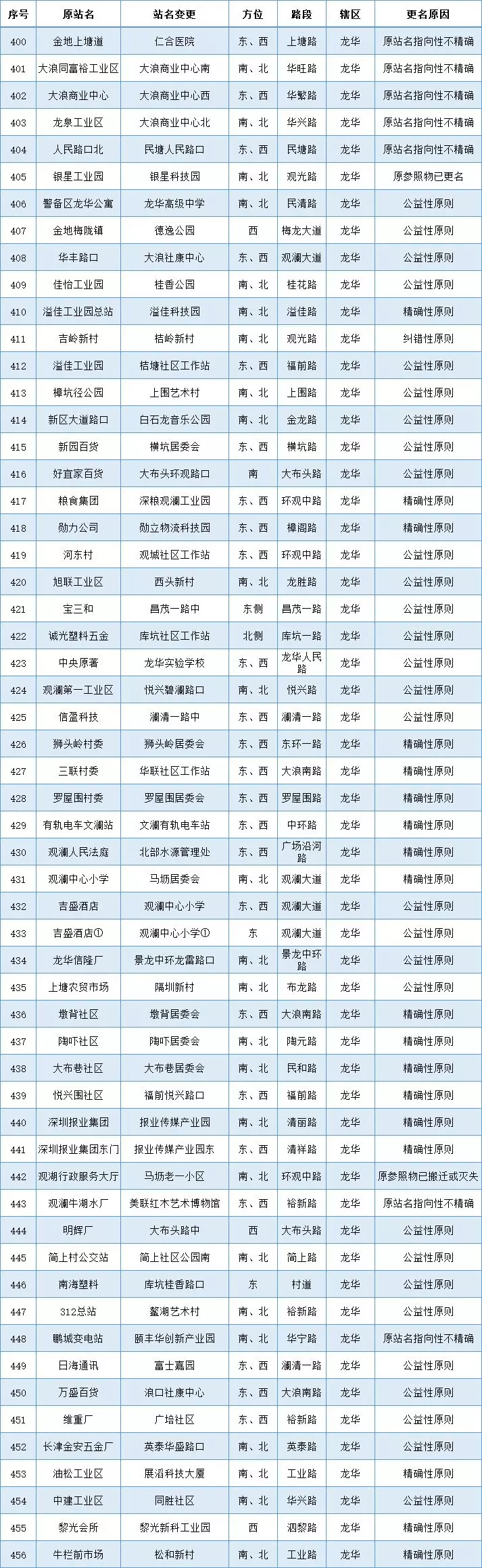 比如观澜第一工业区改为悦兴碧澜路口