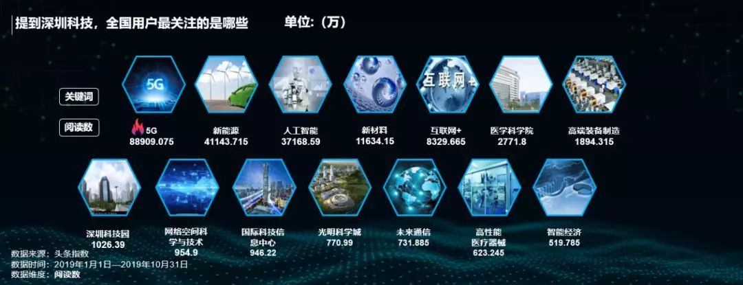 2019年是我国5G商用元年,深圳更是被列入首批5G城市名单,加之因华为的存在,深圳在5G研发及应用上领先全球,备受关注。5G同时还是提到深圳科技时,最受全国网友最关注的关键词。