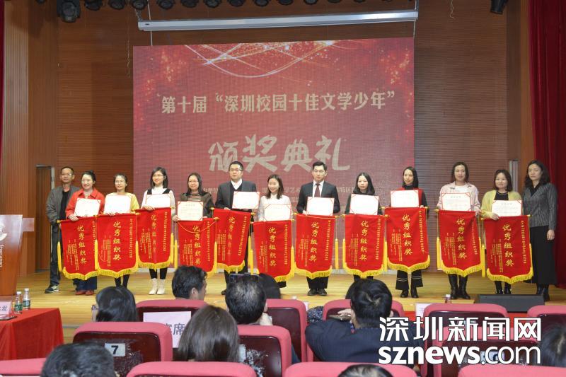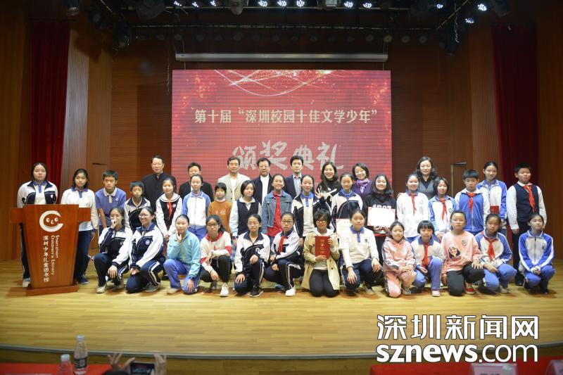 见圳客户端、深圳新闻网12月25日讯(记者 陈彬)12月20日下午,第十届“深圳校园十佳文学少年”颁奖大会在深圳市少儿图书馆举行。深圳市福田区天健小学李楚贤、深圳市龙岗区五和小学赖佳琪等10名学生获评“十佳文学少年”;深圳市罗湖区锦田小学陈彦竹、深圳市龙岗区平安里学校刘菀霖等10名学生获评“十佳文学少年提名奖”,深圳小学刘子媛等80名学生获评“优秀文学少年”,深圳市福田区侨香外国语学校吴书华等89名教师荣获“优秀辅导老师奖”,深圳高级中学(北校区)等35所学校获得“优秀组织奖”。