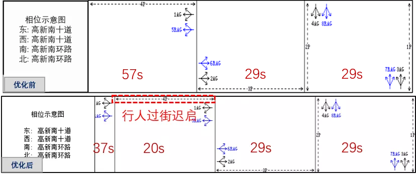 早高峰优化前后配时方案