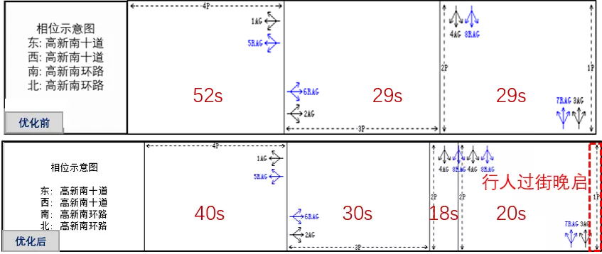 晚高峰优化前后配时方案