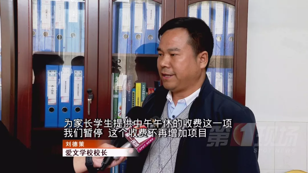 爱文学校校长刘德策介绍,春季学期为家长学生提供了中午午休的收费这一项,但现在已暂停这个收费项目的计划。而针对不交费就不能在校午休的说法,这名负责人表示并不知情。