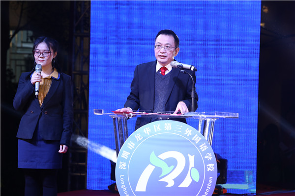 在晚会正式开始之前,聂细刚校长在致辞中提到,深圳市龙华区第三外国语学校是一所致力于植根中国、面向世界的外国语品牌学校,培养具有中国精神、世界情怀的国际公民。同时,在借力于孔子学院、立足打造书香校园、弘扬中华民族优秀传统文化基础上,借力于北京外国语大学、北京师范大学,在全力推进英语双师云课堂。同时,开设了俄语、法语、韩语等小语种选修课,未来还将开设日语、德语、西班牙语等小语种,凸显外国语特色品牌。学校成为全国美育名校联盟学校,北京师范大学项目实验学校,北京外国语大学课题实验基地,泰国曼松德大学孔子学院汉语教学交流基地等;吸引了一大批来自清华大学、北京大学、北京师范大学、爱丁堡大学、曼彻斯特大学、西班牙武康大学等国内外知名高校的优秀人才加盟。学生舞蹈团首次登上2020年广东省少儿春晚的舞台。在第五届深圳教育改革创新大奖评比活动中,荣获“2019年度家校共育典范学校”。