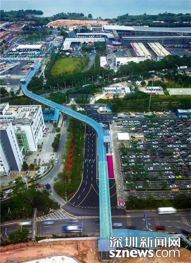 深圳湾口岸人行天桥航拍。(深圳市交通运输局供图)