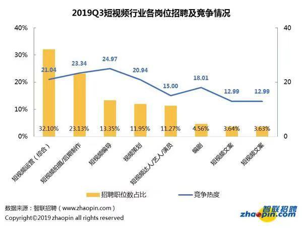 原标题:发展势头惊人!三季度短视频行业招聘职位数同比增长325.28%