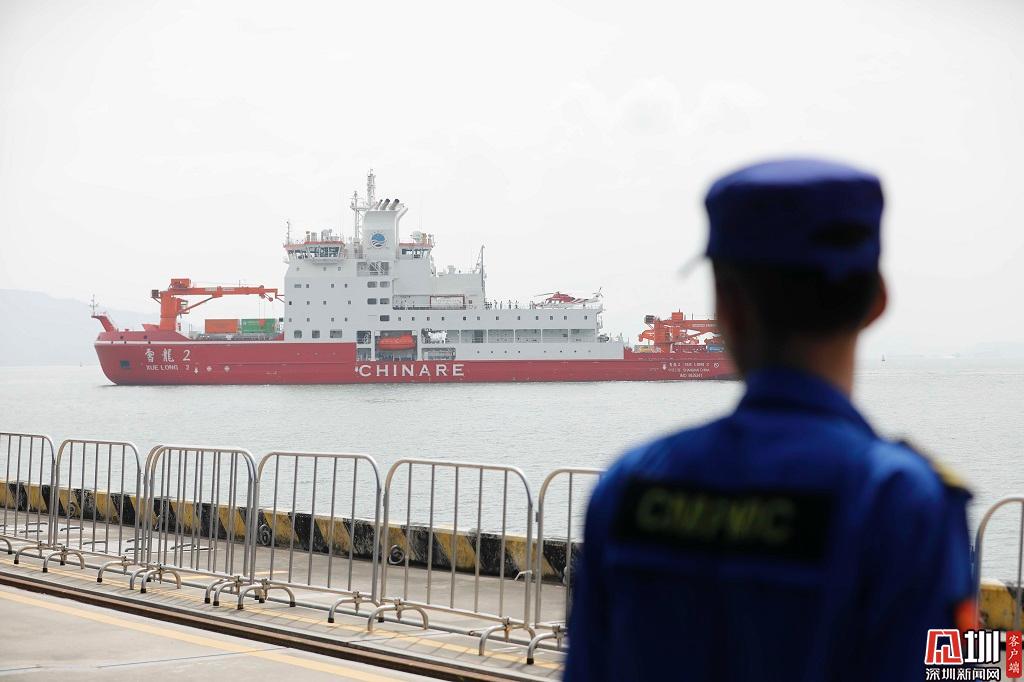 2019年10月13日,蛇口邮轮母港,中国自主建造的首艘极地科考破冰船“雪龙2”号抵达深圳蛇口邮轮母港CR2码头。