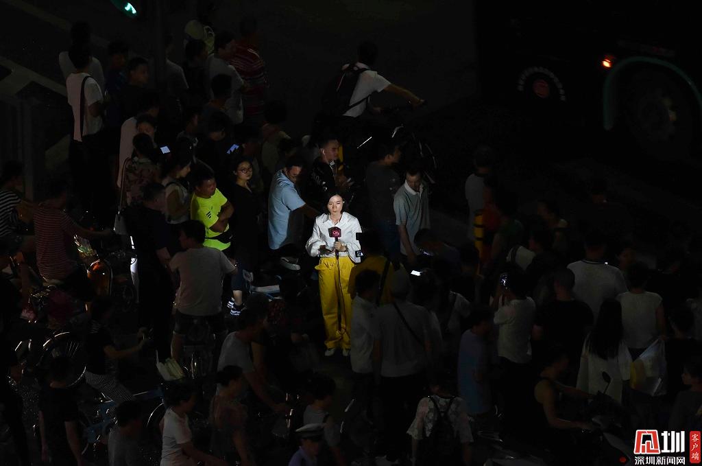 2019年4月23日,深南东路,深圳交警开展和外卖小哥角色互换的活动,美团外卖小哥赵春晓正在路口执勤。