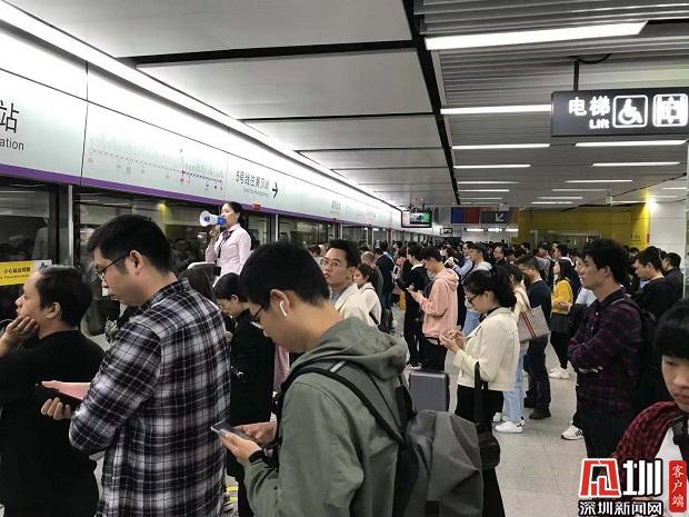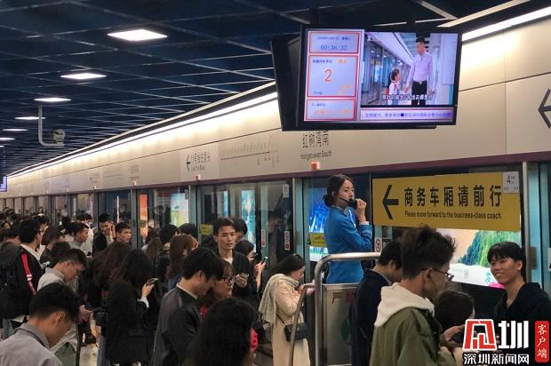 跨年夜深圳地铁红树湾南地铁站客流情况。