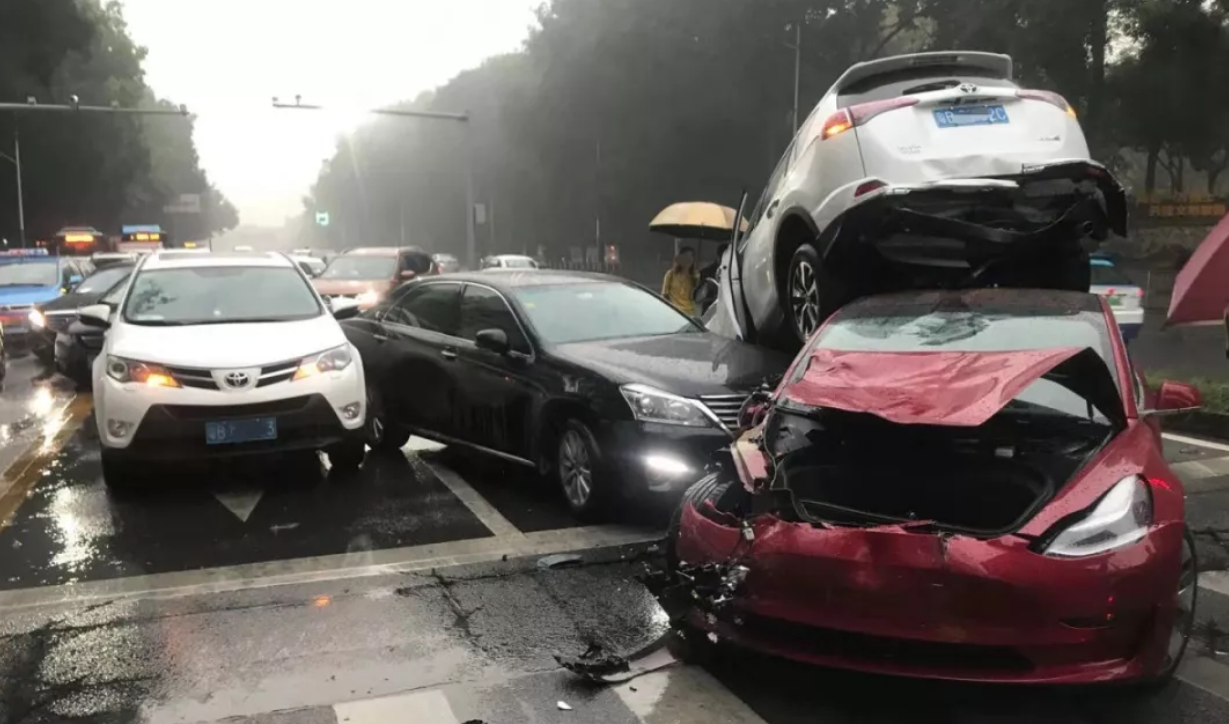 最近,彩田村一人行道发生5车相撞事故