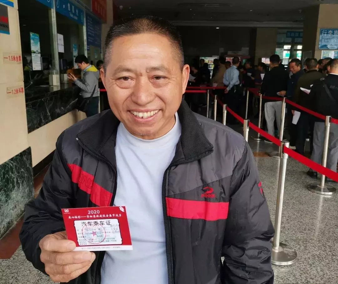 来自四川省南充市的魏先生一大早便来到取票现场,成功取到票的他,满脸挂着笑容。据魏先生介绍,1992年他来深圳务工,平时靠打散工,收入不高,上次回家已经是6年前了,他无比想念家里的老母亲和三个小孩,无奈每年春节都抢不到票,今年,在老乡的告知下得知深圳福彩这个公益活动,总算是买到了回家的车票。“我不懂网络买票,老乡拿我的手机帮忙操作,今年终于可以回家了,很开心!而且汽车直接送到家附近,不需要转车,很方便,感谢福彩!”