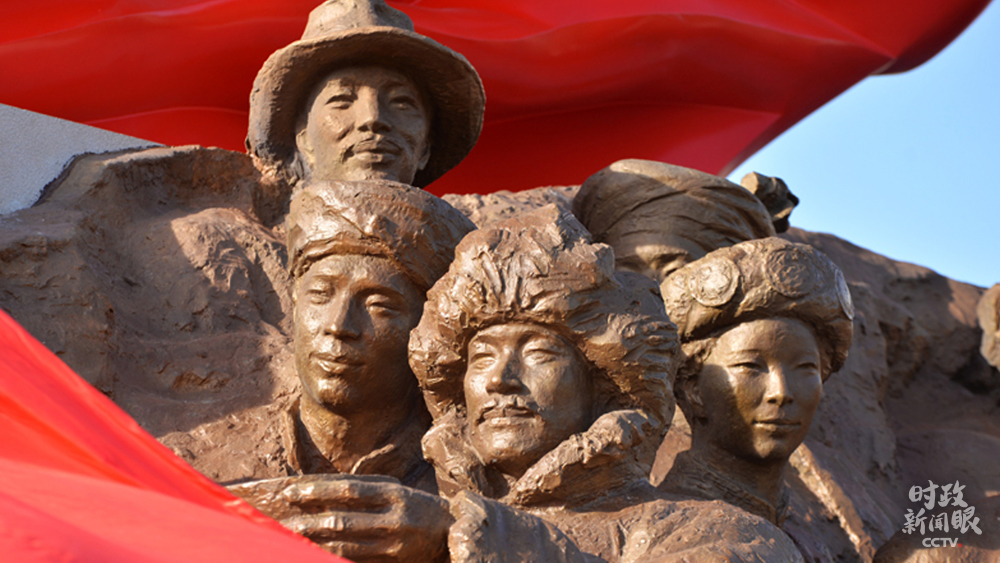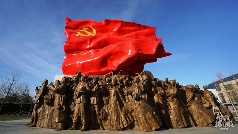 △坐落于中央党校的大型组雕《旗帜》,刻画了中国特色社会主义建设者昂扬的精神风貌。(来源:中央党校官网)