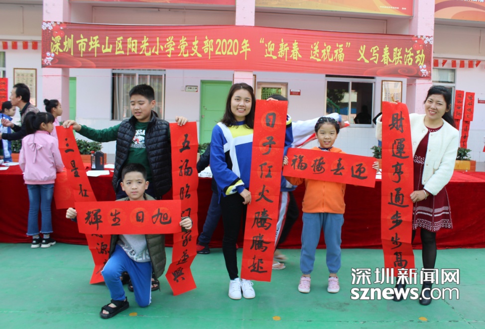 见圳客户端、深圳新闻网2020年1月14日讯 (见圳客户端、深圳新闻网记者 陈亚京 通讯 员 阮卓英)近日,深圳市坪山区阳光小学开展“迎新春 送祝福”义写春联活动,老师们现场挥毫书写一副副寓意新春祝福的春联,为社区居民、家长奉上美好祝愿。当天共计送出上千幅对联,活动得到普遍好评。