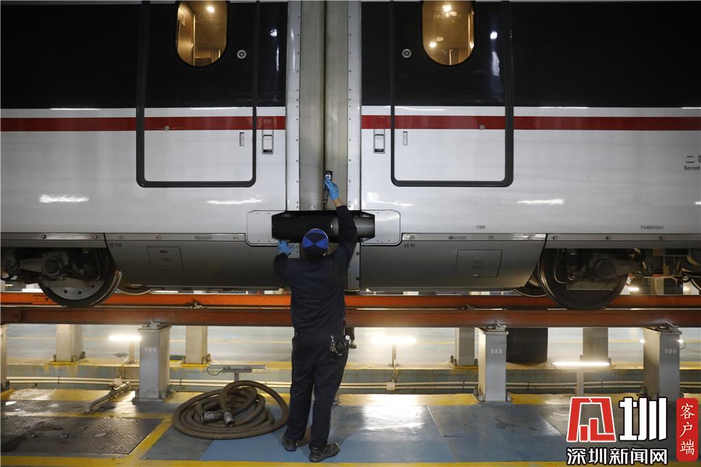 见圳客户端·深圳新闻网2020年1月15日讯(见圳客户端、深圳新闻网记者 涂胜 杨浩翰 陈智妍 韩翔 )2020年春运已经开始,南国高铁“万箭齐发”,满载着旅客回家的期盼与乡愁,驶向祖国的五湖四海。1月14日深夜,深圳新闻网记者探访了地处“特区”的深圳动车运用所,这里的工作人员正不分昼夜地工作,全力保障春运安全有序运行。