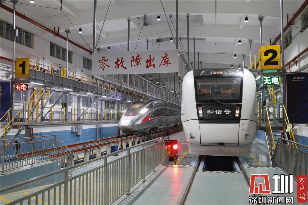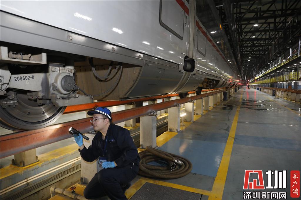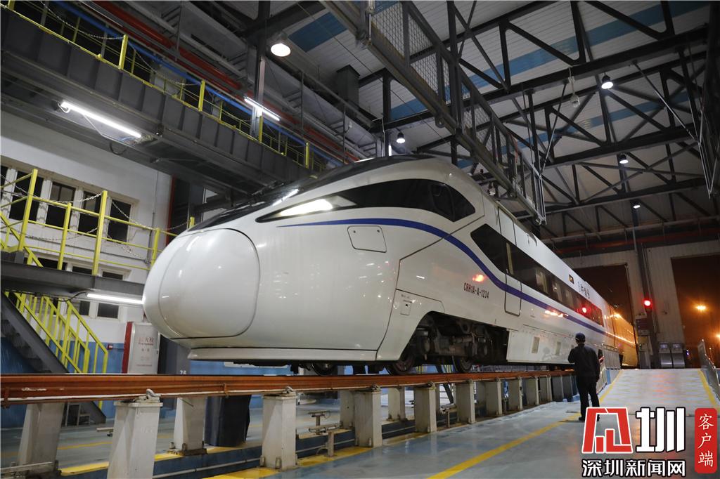 新春走基层|探秘春运里的深圳动车所 高铁列车排队"体检""洗澡"
