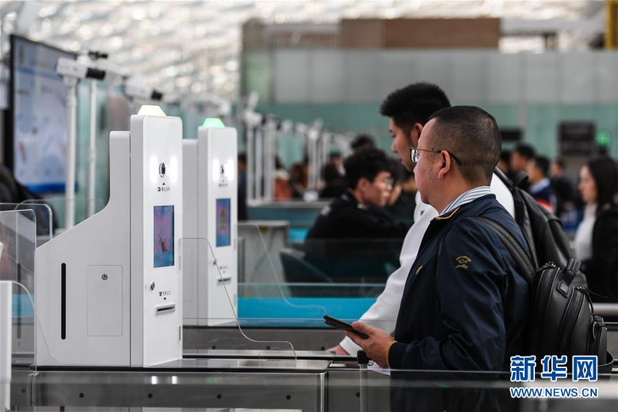 1月15日,旅客在深机场圳出发大厅安检通道体验自助查验证件。新华社记者毛思倩摄