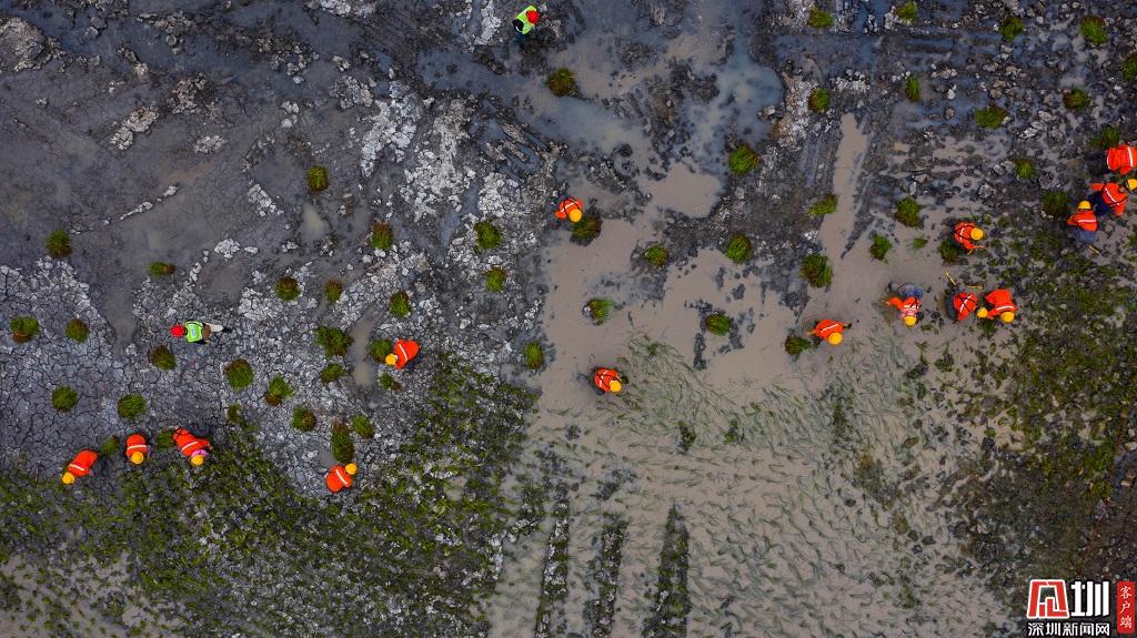 东、西、北湖水生植物人工种植,逾百人队伍连续奋战十天,完成三个湖的种植目标。