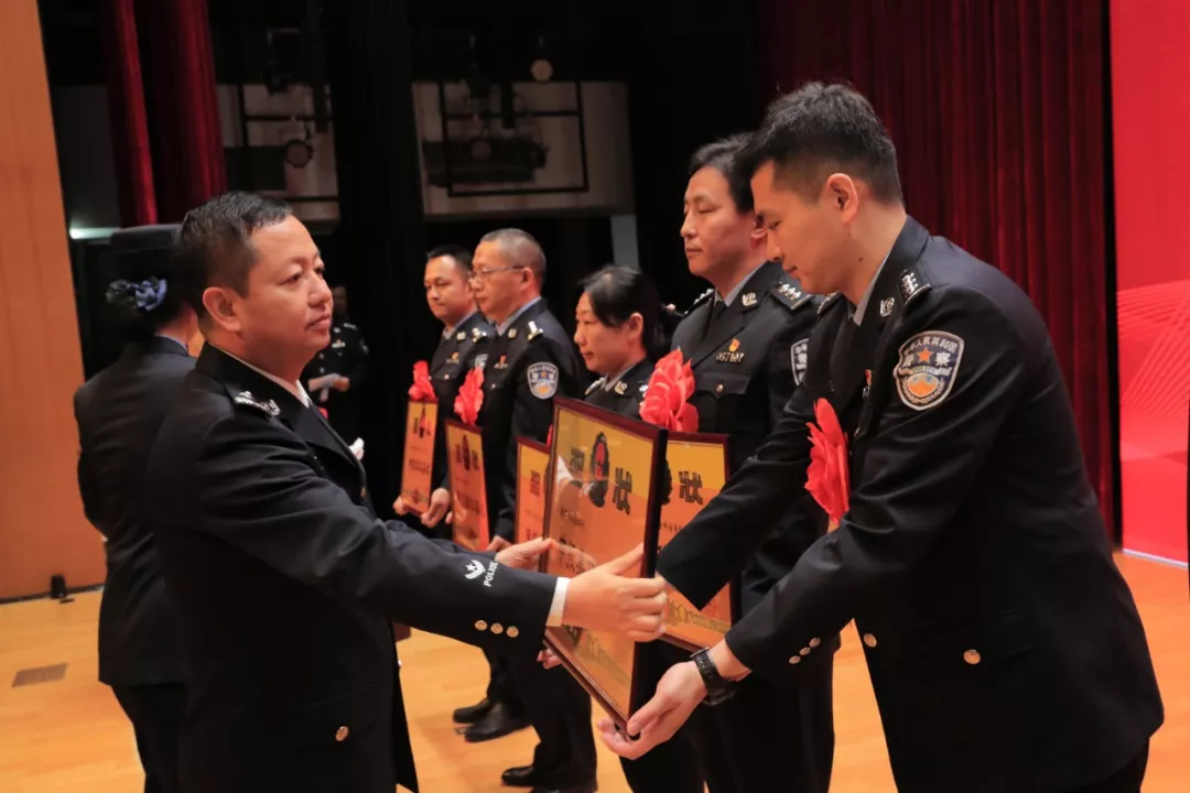 为鼓舞士气,会议对2019年度23个先进集体,263名民警、67名星级辅警及10个民警家庭、10名优秀警嫂进行隆重表彰。