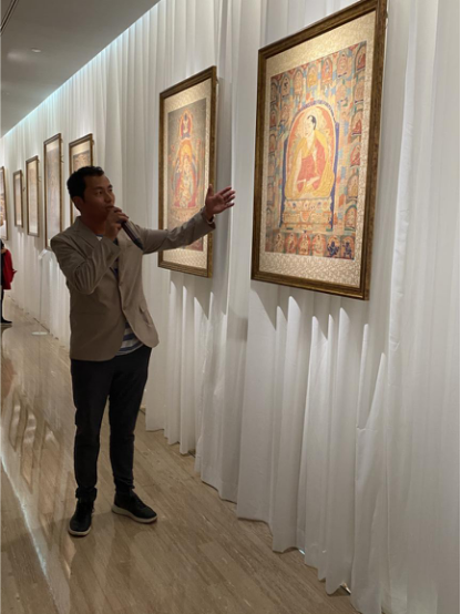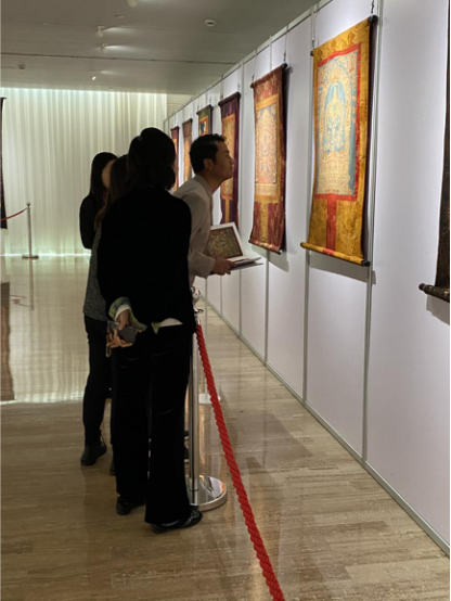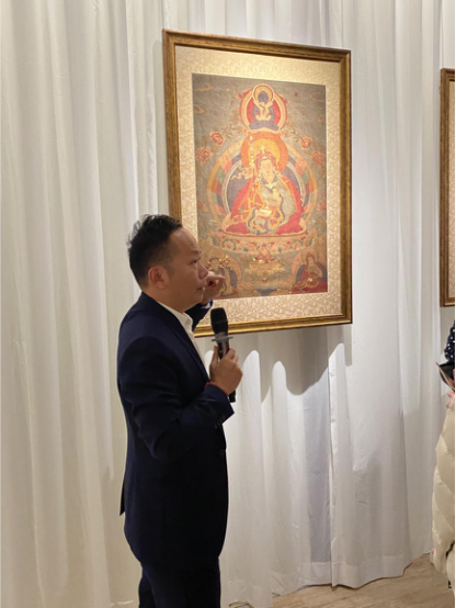 “本次展出的唐卡作品,整体质量可以用‘精湛’这个词来形容。展出的作品级别很高,工艺和艺术表现形式都特别好。”次仁占堆老师在见到展品后,兴奋地说。