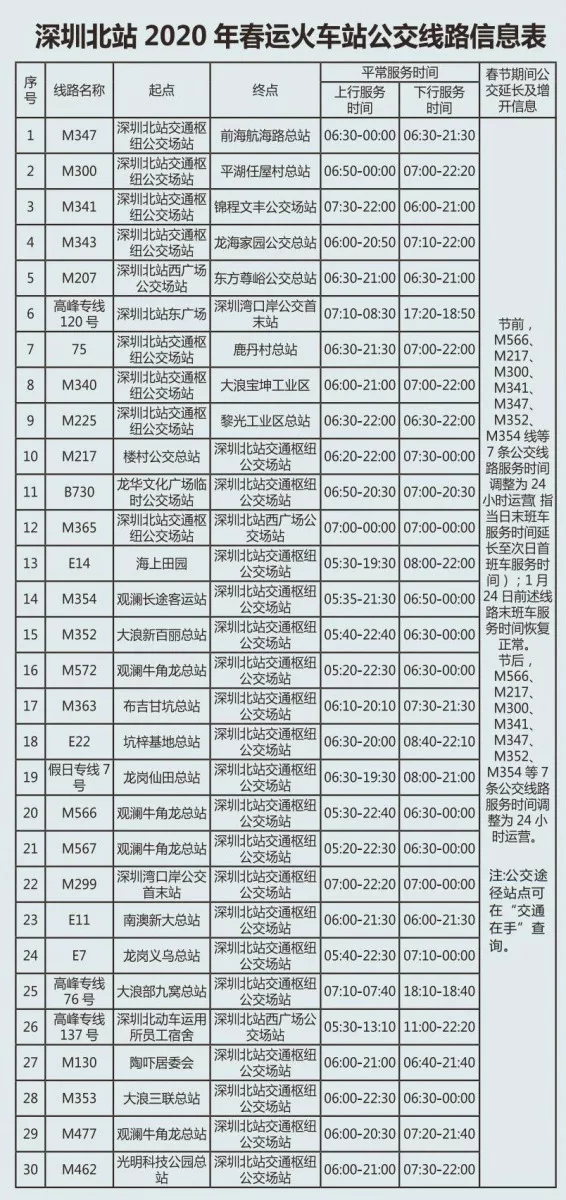 史上最全!深圳各大火车站途经公交线运营时间都在这儿!