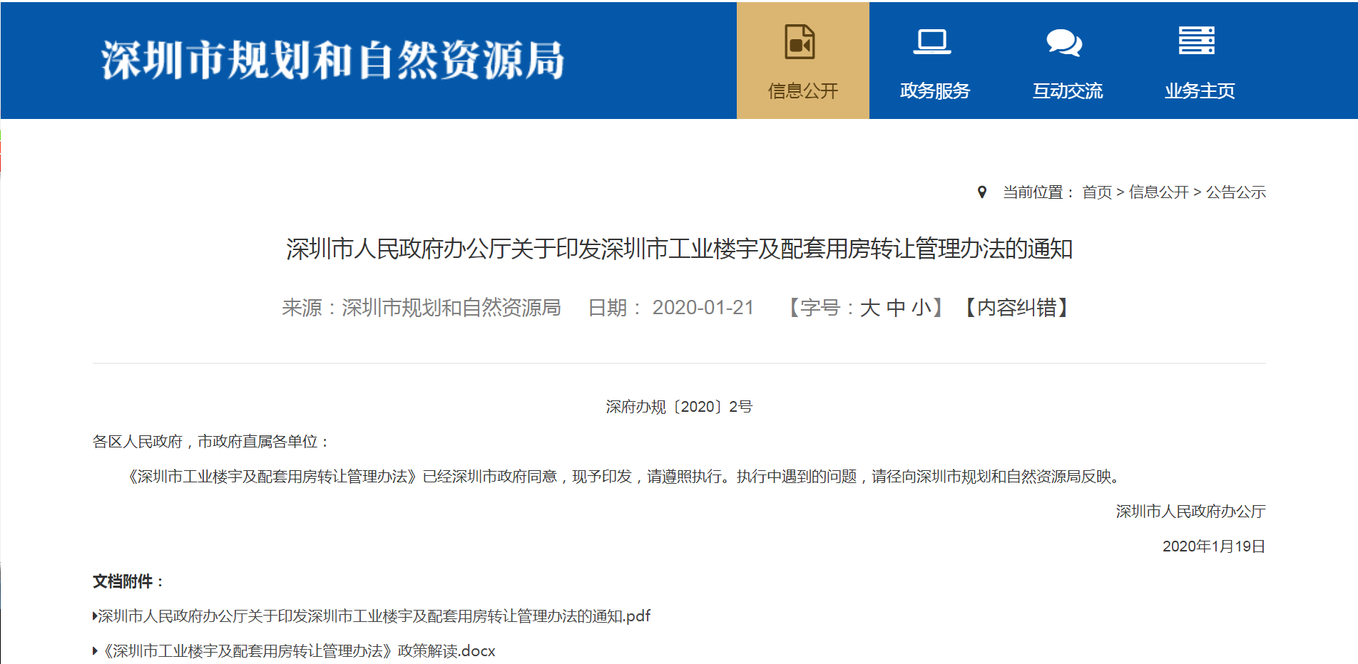 见圳客户端·深圳新闻网2020年1月21日讯(见圳客户端、深圳新闻网记者潘润华)为进一步减轻企业负担,改善营商环境,推动产业转型升级,深圳出新政取消工业楼宇及配套用房转让增值收益、完善转让规则!1月21日,记者从深圳市规划和自然资源局获悉,《深圳市工业楼宇及配套用房转让管理办法》(以下简称《管理办法》)经深圳市政府同意正式印发。《管理办法》规范了工业楼宇及工业配套用房受让人资格条件、强化了产业监管、设定了过渡政策。据悉,《管理办法》自2月1日起施行,有效期5年。