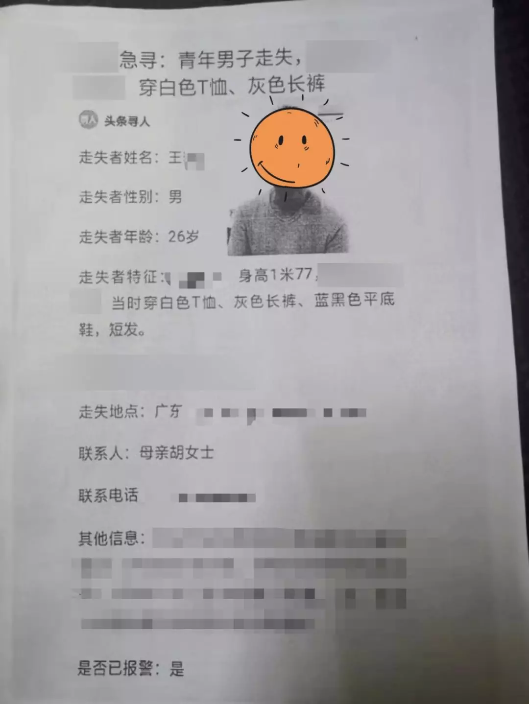 1月20日17时许,事主王先生和胡女士急冲冲进入深圳市公安局福田分局福田派出所报警,称其儿子王某于19日坐车到深圳,下车后走失至今。