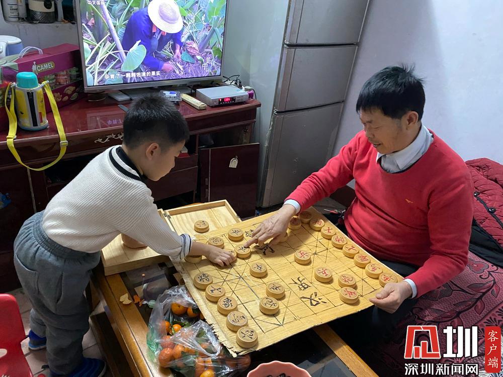 总算到家了,爷爷奶奶看见我超级开心。爷爷还教我下象棋呢!他说用他“马”吃我的“兵”,可是,“马”不是被“兵”骑的吗?见圳客户端、深圳新闻网记者 刘婷 摄