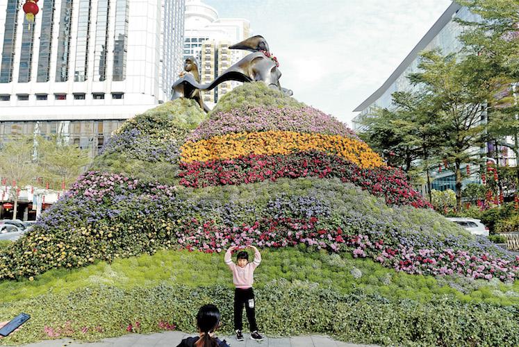 在人民南国贸、金光华、海燕广场路口,罗湖区政府结合街区环境,精心打造了一个五彩缤纷的月季花园,布置了"我心永恒""爱神永驻"等主题打卡点,营造了喜庆、浪漫的新春气氛。