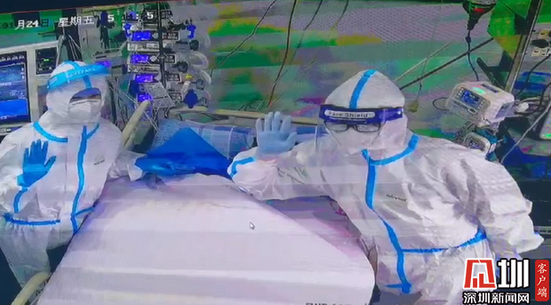 市三院医护人员在感染ICU和大家打招呼,感谢市民朋友的关心和爱护。