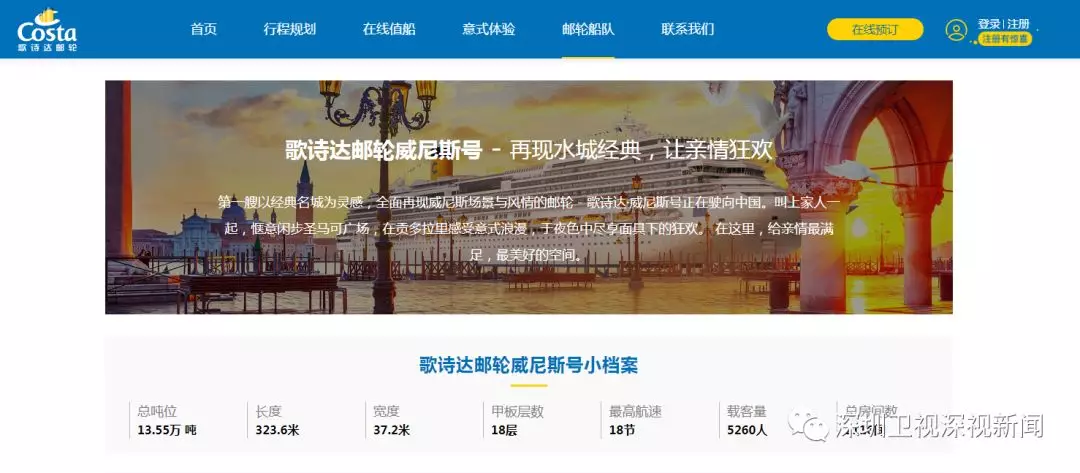 歌诗达邮轮中国官网显示,威尼斯号邮轮载客量5260人,共2116个房间。