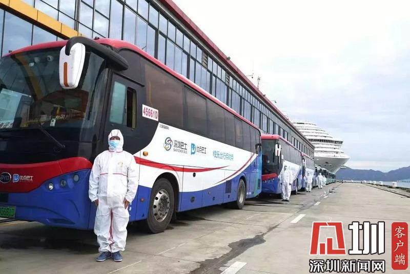 深圳巴士集团组织运力转运“歌诗达·威尼斯号”乘客。