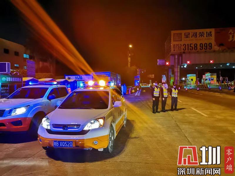 深高速公司工作人员在龙大高速免费段进行深夜值守。